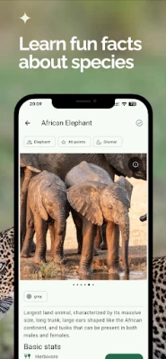 Bushwak piedāvā visaptverošu savvaļas dzīvnieku sarakstu, kas aptver vairāk nekā 250 sugas, kuras sastopamas Āfrikas dienvidu nacionālajos parkos. Katra suga nāk ar augstas kvalitātes attēliem un detalizētiem faktiem par izmēru, svaru, uzturu, dzīves ilgumu un interesantiem faktiem. No ikoniskajiem Lielā Piecinieka dzīvniekiem, piemēram, lauvām, ziloņiem un leopardiem, līdz žirafēm, gepardiem un pūcēm, Bushwak ir jūsu uzticamais ceļvedis. Izmantojiet lietotnes ātrās identifikācijas funkcijas ar filtriem, piemēram, izmērs, krāsa vai pēdu nospiedumi, lai precīzi atšķirtu līdzīgas sugas un bagātinātu katru novērojumu. Turklāt Bushwak kalpo kā jūsu personīgais meklētājs, ļaujot reģistrēt novērojumus ar precīzu atrašanās vietu, dzīvnieku skaitu, uzvedību un kvalitāti, tādējādi veidojot detalizētu safari pieredzes žurnālu.