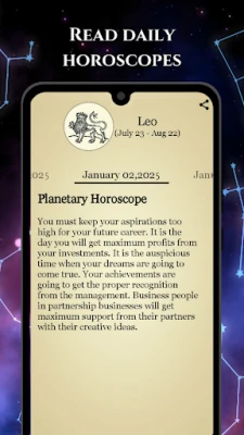 Vai esat gatavs atklāt visdziļākos ieskatus par sevi un savu apkārtni? Ar lietotni *Zodiaka datumu horoskopa lasīšana* astroloģijas pasaule paveras jūsu acu priekšā, sniedzot daudz vairāk nekā tikai ikdienas horoskopus. Iegūstiet visaptverošu planētu horoskopu, uzziniet par savu astroloģisko elementu un dominējošo planētu, izpētiet savas raksturīgās īpašības, kā arī atklājiet savu veiksmes krāsu, dienu, akmeni un skaitli. Tā ir jūsu personalizētā ceļvedis uz pašizpēti.
