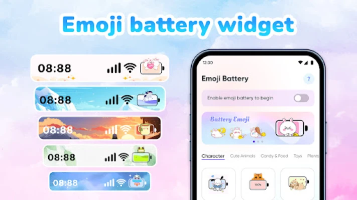 Ir pienācis laiks atvadīties no vienmuļās un neizteiksmīgās noklusējuma baterijas ikonas! Ja jūsu viedtālrunis ir kļuvis par pelēku biedru, kam trūkst personības, tad **Emoji Battery** ir risinājums, kas atdzīvinās jūsu ierīci. Šī inovatīvā lietotne ļauj jums pilnībā pārveidot ierīces uzlādes indikatoru, piešķirot tam dzīvīgumu ar burvīgām emocijikonām, krāsainām uzlīmēm un radošiem izgriezuma stiliem. Aizmirstiet par vienkāršiem procentiem – izsakiet sevi ar katru uzlādes līmeni!