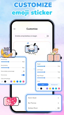 Lietotne sniedz iespēju ne tikai mainīt statusa joslu, bet arī radoši transformēt tālruņa izgriezuma (notch) zonu, padarot to par integrētu un stilīgu daļu no baterijas displeja. Pielāgojiet to ar īpašām uzlīmēm un tēmām, lai katrs skatiens uz jūsu tālruņa ekrānu būtu priecīgs un personisks. **Emoji Battery** garantē, ka jūsu baterijas līmenis tiks attēlots reāllaikā, vienlaikus saglabājot estētisko baudījumu un funkcionalitāti. Padariet savu tālruni patiesi atšķirīgu un uzlādētu ar prieku, katru reizi pārbaudot tā jaudas līmeni.