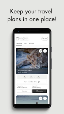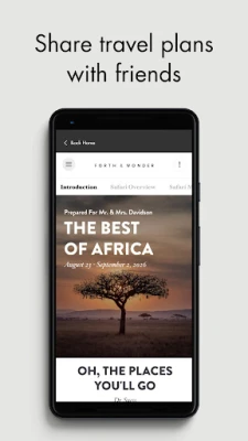 Forth & Wonder App apvieno katru jūsu personalizētā maršruta detaļu vienuviet, nodrošinot bezstresa un aizraujošu piedzīvojumu. Izstrādāta izsmalcinātiem ceļotājiem, kuri meklē īpaši pielāgotas, luksusa pieredzes, šī lietotne ļauj izpētīt pasauli ar pārliecību.