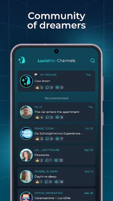 LucidMe nav tikai personīga pieredze; tā ir arī kopienas veidošanas platforma. Sazinieties ar draugiem, daloties ar saviem sapņiem un atklājumiem, iedvesmojot un atbalstot viens otru šajā aizraujošajā pašizpētes ceļojumā. Lai optimizētu jūsu atpūtu un ievērojami palielinātu lucīdās sapņošanas iespējas, LucidMe piedāvā progresīvu miega izsekotāju, ko var izmantot kopā ar LucidMe masku. Izsekojot jūsu miega modeļus, jūs varēsiet precīzāk izprast un pielāgot savu miega ciklu, lai maksimāli palielinātu iespējas piedzīvot apzinātus sapņus. Ar LucidMe, ikviena nakts ir piedzīvojums, kas gaida atklāšanu.