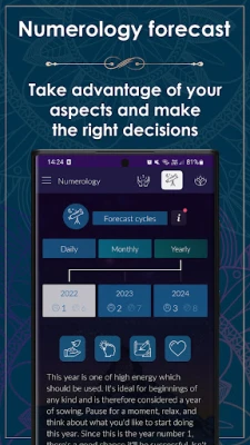 Šī lietotne ir izstrādāta kā jūsu uzticamais pavadonis ceļā uz laimīgāku un pilnvērtīgāku dzīvi. Tā kalpo kā visaptverošs numeroloģijas kalkulators, piedāvājot detalizētus Pitagora numeroloģijas lasījumus un nodrošinot savietojamību ar telefoniem un planšetdatoriem. Numerology app ir šeit, lai vadītu jūs, atstājot izvēles brīvību jūsu rokās, veidojot savu likteni apzinātāk.