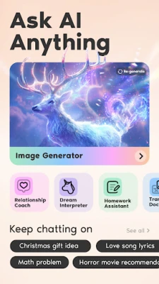 Atraisiet savu radošumu, pārvēršot vārdus un idejas satriecošos vizuālos attēlos ar mūsu attēlu ģenerēšanas funkciju. Vienkārši aprakstiet savu vīziju, un AI radīs unikālus mākslas darbus, kas atspoguļo jūsu iztēli. Vai vēlaties izpētīt nezināmo? Iegūstiet ieskatu savā nākotnē, izmantojot astroloģiskās prognozes un nākotnes redzējuma rīkus, kas sniegs jums vadību un palīdzēs sagatavoties gaidāmajam. Turklāt, atklājiet slēpto nozīmi savos sapņos, izmantojot padziļinātu AI analīzi, kas palīdzēs labāk izprast sevi un savu zemapziņu.