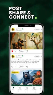 Walk Into The Wild veicina dinamiskas kopienas veidošanos, izmantojot interaktīvo Sākuma Plūsmu. Šeit jūs varat dalīties ar saviem ceļojumu stāstiem, publicēt elpu aizraujošas fotogrāfijas, uzdot jautājumus un iesaistīties sarunās ar citiem dabas mīļotājiem. Lai vēl vairāk uzlabotu jūsu plānošanu, Walk Into The Wild nodrošina reāllaika video novērojumus no dažādiem Indijas mežiem. Šīs aktuālās ziņas par dzīvnieku kustībām sniedz nenovērtējamu ieskatu, palīdzot jums precīzi un efektīvi plānot savu nākamā piedzīvojuma maršrutu.