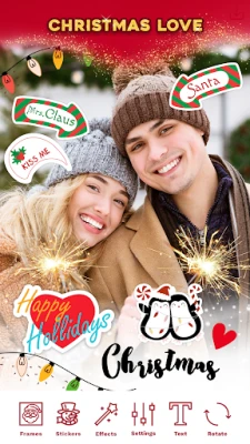 Uzlabojiet savu attēlu noskaņu, izmantojot mākslinieciskos filtrus un efektus, kas pieejami "Ziemassvētku foto rāmji un kartītes". Eksperimentējiet ar dažādiem vizuālajiem uzlabojumiem, lai radītu nevainojamu svētku estētiku, pārvēršot parastus momentuzņēmumus par ziemas brīnumzemes attēliem. Ar šiem daudzpusīgajiem rediģēšanas rīkiem – efektiem, filtriem, teksta pievienošanu un uzlīmēm – jūsu radošās iespējas ir bezgalīgas. Atklājiet jaunu veidu, kā dalīties ar svētku prieku caur personalizētām fotogrāfijām un apsveikuma kartītēm.